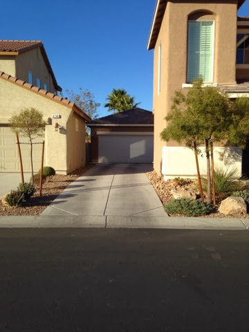Onto the matter of the First Cleanest/Neatest house on the block. They are our neighbors to the west, and are the sweetest little retired couple. They are immaculate and quiet. Best neighbors ever. However I have to stifle a chuckle when I see her out every Friday trimming her bushes & trees. No fail. Every week. The plants don't even grow that fast! She prunes the bushes into perfect, yet tiny, circles. She has a tree across the driveway that is the exact species as the tree in my front yard, on the other side of the driveway. I give you this picture for comparison.